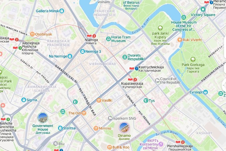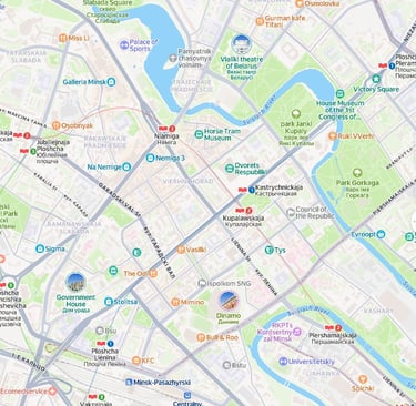 We recommend hotel close to the city historical and tourist center, close or around the streets Internacyjanalnaja street, Niamiga Avenue, Niezaliezhnasci (Independence Avenue) and Karl Marx streets.